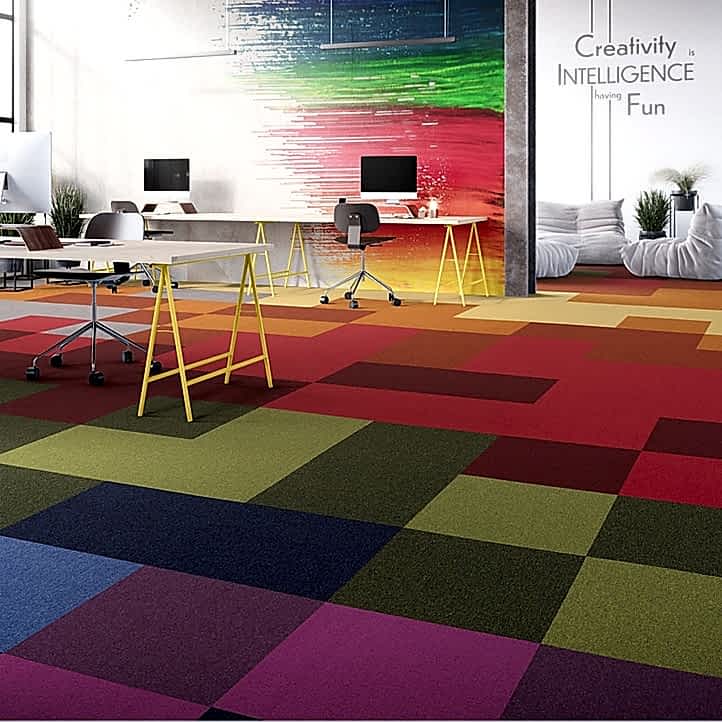 Canlı tonlar, toprak tonlarındaki organik renkler ve çok yönlü kullanışlı renklerle Creative Spark, günümüz ticari iç mekanlarının farklı ruh hallerine cevap vermeye, bireysellik ve uyum getirmeye hazır. IVC Art Intervention Creative Spark 140 Karo Halı